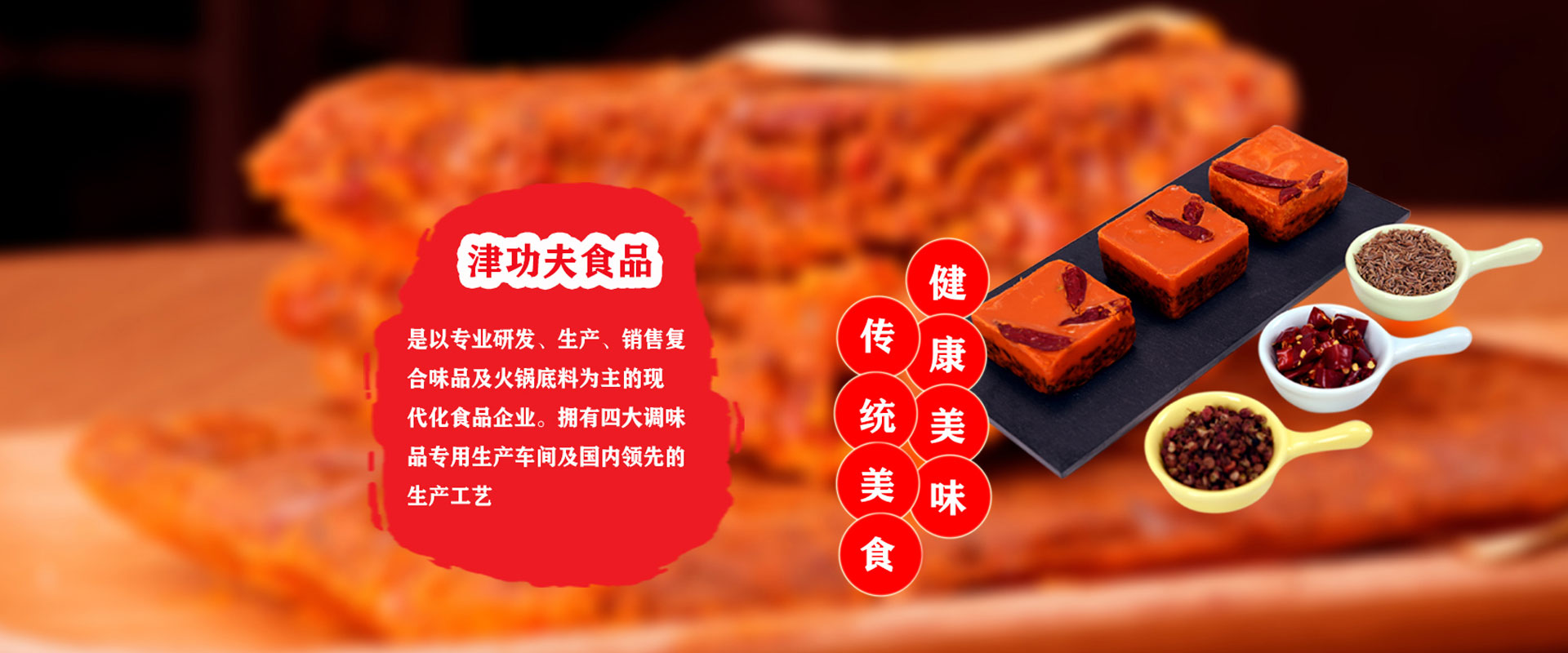 廣東津功夫食品有限公司,位于廣東省肇慶市國家高新區,占地面積約2.5萬平方米,是以專業研發(fā)、生產、銷售復合調味品及火鍋底料為主的現代化食品企業。      "津功夫"為公司注冊商標。公司擁有四大調味品專用生產車間及國內領先的生產工藝;裝備有反應釜、電磁炒鍋、天然氣炒鍋、蒸煮生產線、各型號全自動包裝機、冷封生產線等先進生產設備,年生產能力達2萬噸;配備有微檢、重金屬、金檢、水分、折光等檢測設備。        公司依照國家食品安全法,采用GMP及ISO管理標準,已先后通過ISO-22000質量管理體系認證、HACCP認證。        公司研發(fā)團隊由公司創(chuàng)始人親自帶隊,立足當下,不斷創(chuàng)新,將在調味品行業20余年的潛心研究成果變?yōu)楝F實,精品輩出,為客戶創(chuàng)造更多、更好的價值。公司以川味調味品為根,以客戶需求為本,開發(fā)了復合調味品及火鍋底料兩大板塊的系列產品。復合調味品板塊涵蓋: